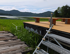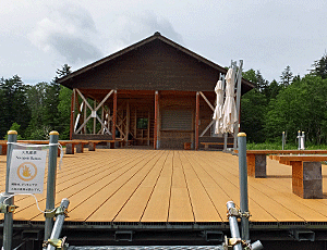 | 沼尻休憩所に着いた 9:03 新しいデッキ ここから燧ケ岳の「ミノブチ岳」へ行ける |