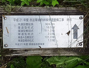 | 木道に貼り付けてあった 木道工事の説明 平成21年に整備工事をした・・・と |