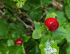カクミノスノキ:ツツジ科 角ばっては見えないが 実が赤いから |