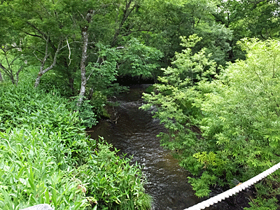 右へ行ったすぐの所に 「ヨッピ吊り橋」 下を流れる川は「ヨッピ川」 |