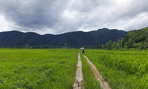 | こちら側はこれから行く白砂湿原や見晴十字路方面 |