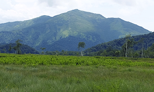 | 竜宮小屋を振り返ると、後ろは燧ケ岳 形は少し違って見える |