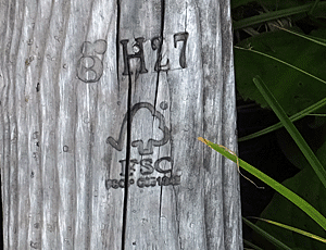 | 木道の印 左 H27(平成27年のことかな?) 右 2024 (2024年!今年のこと?) H27年の板と、2024年の板がここでくっついている・・・ってこと 今年工事をしたってことだね |