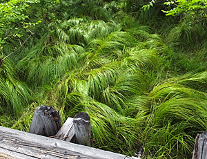 | 尾瀬沼の中に生えているのは、 フトイかな?:イグサ科 |
