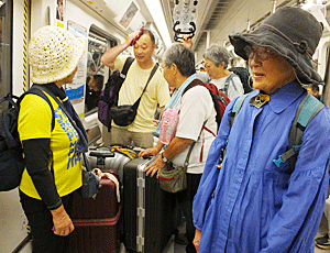 | また乗り換えて・・・ バスターミナルへ 朝原さんが背負っている 紫色のバッグは、私のバッグ 私だけスーツケースではないので いつも、背負ってもらっていた・・・ 申しわけない! |