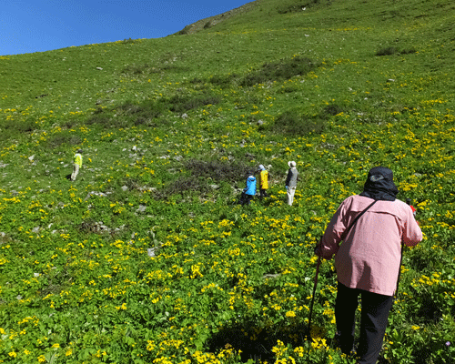| ずう~っと稜線辺りまでお花畑~ 黄色はリュウキンカの仲間:キンポウゲ科 |