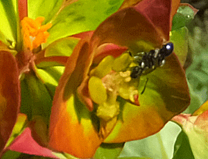 | 赤っぽいのは、トウダイグサ科 黄色い花はリュウキンカの仲間(キンポウゲ科) |