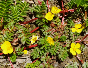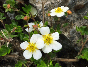地面を這って伸びていくバラ科の花 |