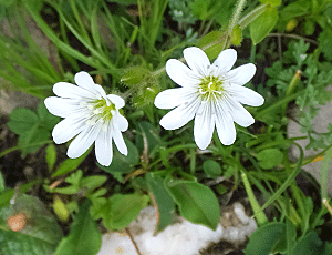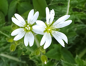 | 花びらの先が丸い・・・と、とがっているの違いはあるが、 ハコベの仲間:ナデシコ科 |