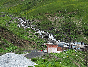 急な斜面を登ると息切れが激しくなるので 「ここで休みながら待っていrます」といって 斜面一帯をじっくり歩いて 写真を撮って気ままに観察していた ゆっくり登れば車道までなら行けるだろうと ジグザグに登って行った 登り着いたところがここ ↑ 谷川のある場所だった 13:07 |