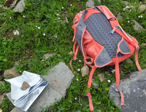 | この赤いザックを目印に置いておいた ・・・・・・・・・ 全員揃ってから、出発 |