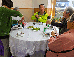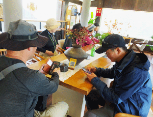 | 2階の喫茶室でお茶休憩 右端はガイドの男性 |