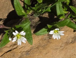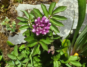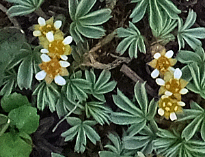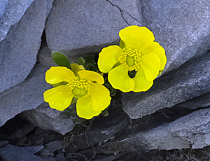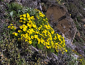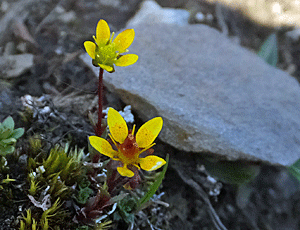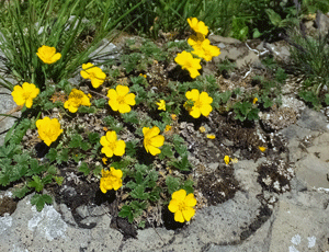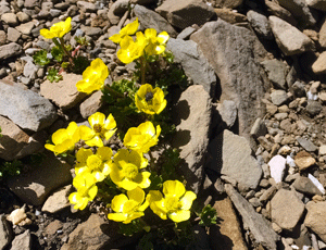 ガレ場でも、可愛い花が咲いている キンポウゲ科かな? |