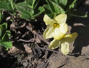 | これは何? 地面から顔を出して咲いているような花 右 花の拡大 |