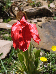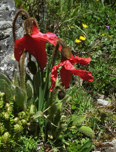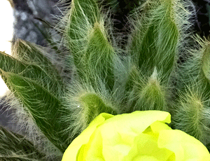 | 左 イエローポピーの咲き始め 右 花の周りの葉は、柔らかそうに見えるが 触ると痛いのなんの |