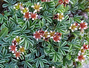 | 岩にへばりつくような花の塊 バラ科かな? |