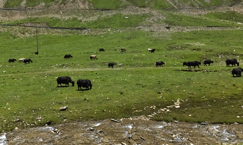 | ヤクの群れ そばには小川 水の心配は無さそう |