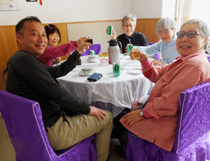 | 場所を変えて昼食休憩 10:43 パンパンに膨れた袋 |