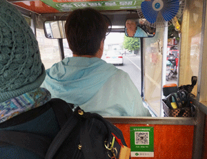 | 乗車~ 私を見て、男の子が席を譲ってくれた サンキューといって、座った こんなことが日常茶飯事・・・といった感じ |