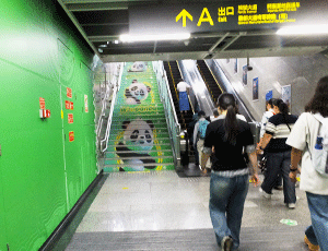 9:33駅に着いた 9:33 階段にパンダのイラスト そういえば、電車の中の釣り手も パンダの顔に似ていた |