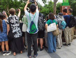 | 何処にいるんだろうと、 きょろきょろ探しながら歩いて行くと 人だかり 奥の方にパンダがいた |