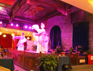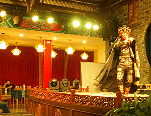 | 入れ替えなしで、何度も観れるって 1人で『変面』を演じている最中だった ・・・ 変面とは、(ネット検索してみた) 『中国の四川省に伝わる伝統芸能で、 役者が一瞬で顔のお面を変えるパフォーマンスです。 この技術は「一子相伝」で秘伝とされ、 その仕組みは国家機密とされています。』だって 確かに後ろを向いた一瞬に面が変わっていた! 壇から下りて、握手をするように手を出されたので、 勿論喜んで握手をした 最後は、面を取って素のままの顔を出してくれた が、誰も拍手をしない! これが中国の流儀? 次の「琴?」や優美な踊りが終わっても 拍手するのは日本人仲間だけ |