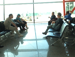 | 出発ゲートを探して歩き、待合室でおしゃべり |
