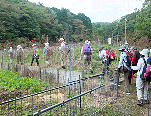 | 弥勒山下の、東海自然歩道に合流 ここまでの道は、あまり人が通らないのでクモの巣が張っていて 先頭を歩く人は、大変だった・・・ 以後、先頭を交代することにした |
