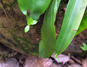 | ショウジョウバカマ:ユリ科 ショウジョウバカマの葉っぱの先に、 子どもができているのを初めて見たのは、このコースのこの場所 今日も、子どもができていた |