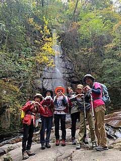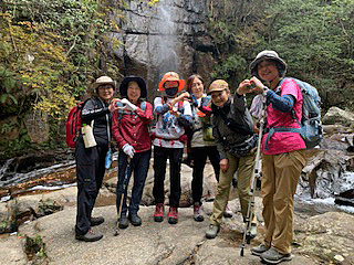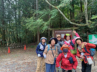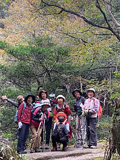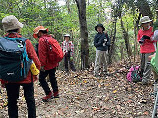 | 少し小雨が降り出したが、みんなは笑顔 | 四季桜かな? 紅葉の向こうに桜の花 |