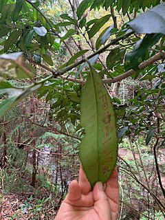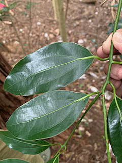 | タラヨウ この葉の裏に字を書くと消えないんだって |
