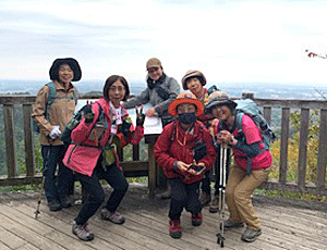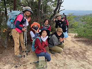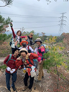 | 山に登ることが好きな仲間の笑顔 元岩巣山でランチタイム、20分 |