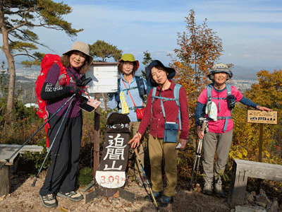 | A班、B班集合写真 迫間山頂でB班さんとの出会いの嬉しさは格別です |