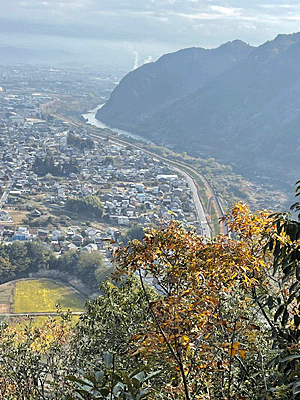 | 見晴らしの良い日には 真ん中の山の向こうには小牧城が、 テレビ塔や名古屋ドームも見えるそうです |