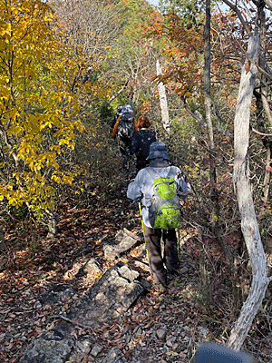 | 駐車場到着 ・・・・・・・・・・・・・・・・・・・・・・・・・・ ●猿啄城(城山)登山口(p)8:50~9:05出発→勝山9:50→機子山10:10→坂祝分岐10:25 → 明王山10:35~10:45→金比羅山10:55→迫間不動(昼食)11:45~12:25→迫間山12:50~13:05 →坂祝分岐13:20→猿啄城(城山)14:10~14:25→猿啄城(城山)登山口(p) 14:50着 ●歩いた歩数 約19.000歩 ●歩いた距離 約13km ●行動時間 約5時間45分 ・・・・・・・・・・・・・・・・・・・・・・・ BY KUNO |