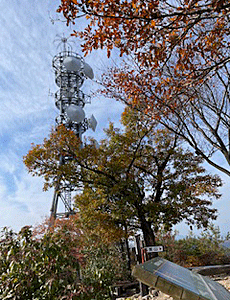 | こんな山頂に大きな電波塔?が 多分ヘリコプターで運ばれたのかな?と思った後で 下山して行くと結構広めの舗装道路がその近くまで来ていて、 ここまで車で運ばれたのね〜と思いました |