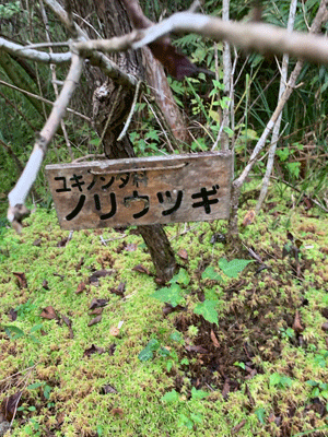 | 皆で看板を見ながら行く道を確認 | 急な丸太の階段を登らず、 この木の橋を渡り進んだ |