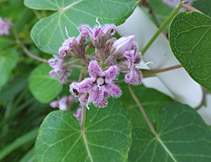 | ガガイモ:ガガイモ科 中央線のフェンスに いっぱい絡みついて咲いていた 大きな実もできていた |
