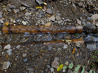 | 林道との交差点 クマ避けの鐘を鳴らして通過 |
