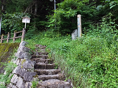 | 石畳は濡れていると滑りやすい! 左右の草刈りがしてあるので、 期待していた花がごっそり無くなっていた |