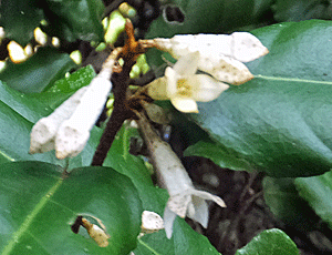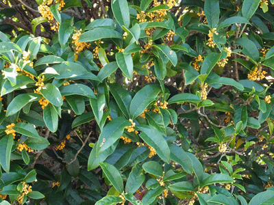 | キンモクセイ:モクセイ科 ん?何だろうこの匂いは? と思って辺りを見回すと、キンモクセイが満開だった |