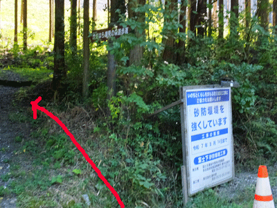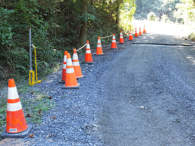 | 以前は、さっきの橋から上流は、車が通れなかったが、 今は工事用車両が通れるように拡張されていた 歩行者は三角コーンの外側を歩くように・・・と 車は1台とすれ違ったきり |