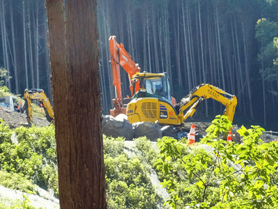 | 小学校との分岐までは、 工事用の為か、やや様子が変わっていた 重機があったが動いてはいなかった |
