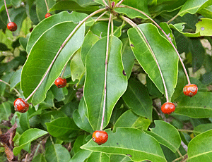 | クロガネモチ?:モチノキ科 左 赤い実 右 オレンジ色の実 |