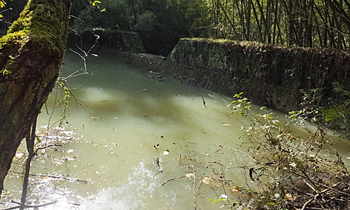 | 堰堤の向こうはどうなっているだろうか 心配しながら下りて行くと こちらはいつもと同じ水量 10:21 |