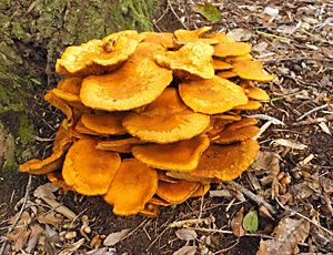 | 木の根元に一抱えもある たくさんのキノコの塊りがあった |