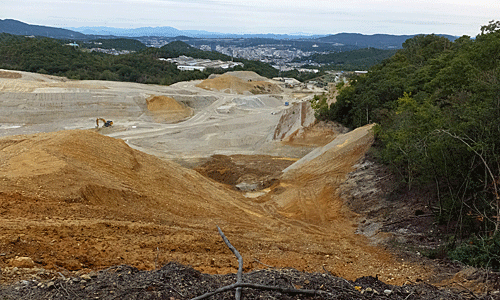 | 水道タンクの横を通り・・・ 11;:03 工事現場を見下ろす場所へ ↓ |