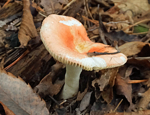 これも木にくっついているキノコだが、 二色がくっきりしていた |