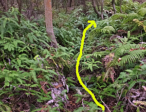 | コシダで道がふさがれている 足元が見えないので要注意 |