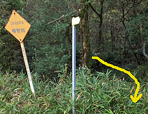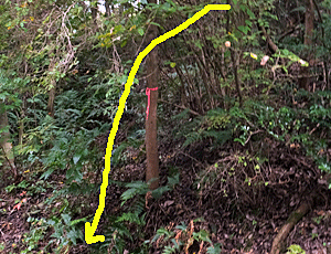 | 崖で行き止まりになっているいつもの展望地はパスして 今日は、その手前にある分岐から、滝呂へ下りることにした |